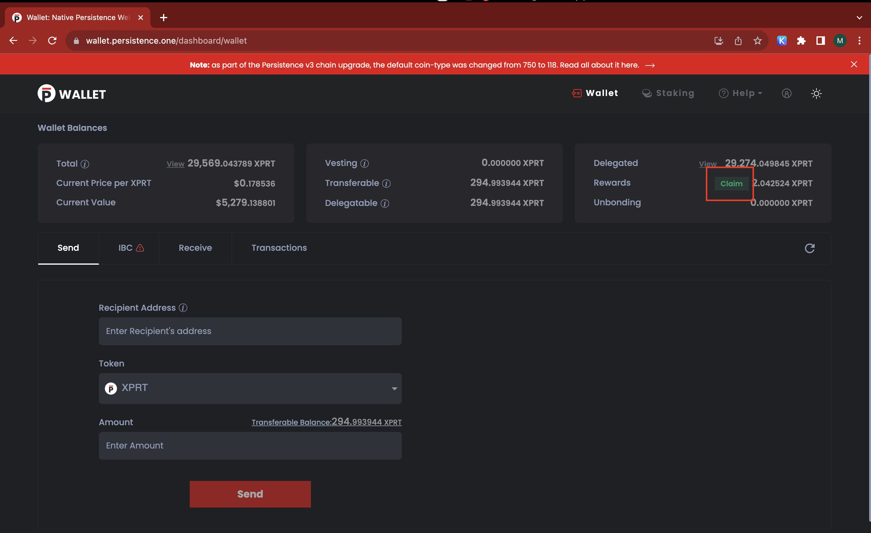 ❌ Danger: Skip this step if you don't have any staked tokens