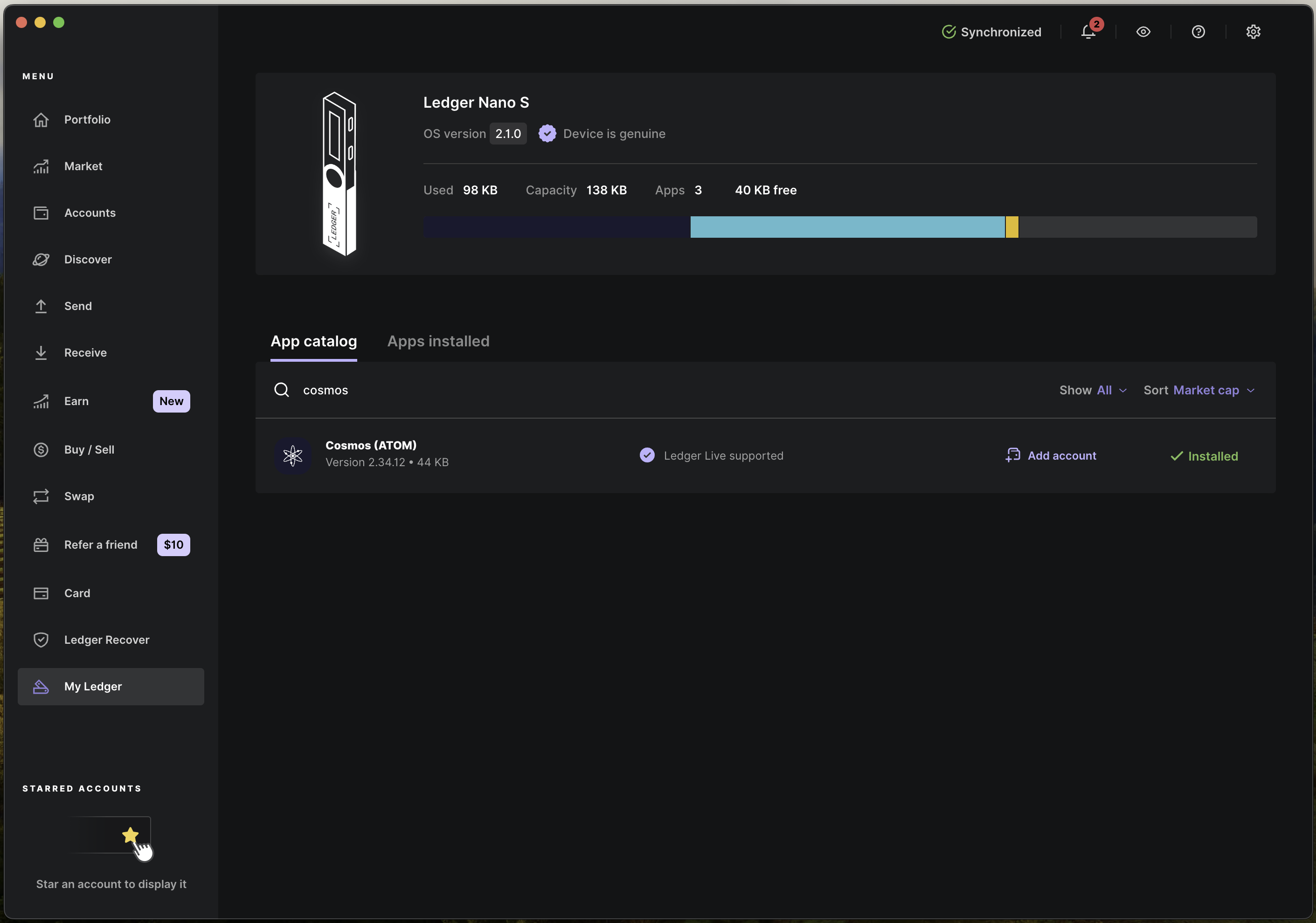 ⚠️ Warning: Don't have cosmos app installed on your ledger?